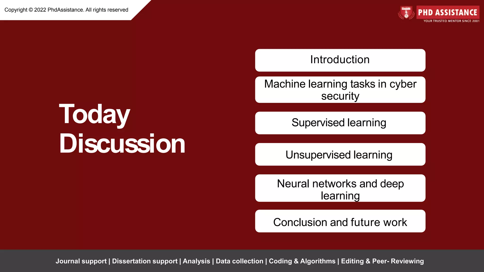 The document provides an overview of cybersecurity through the lens of machine learning, highlighting its significance in defending ICT systems against cyber threats. It covers various learning techniques, including supervised and unsupervised learning, and discusses the importance of neural networks and deep learning in improving security measures. The conclusion emphasizes the need for a robust data-driven framework to enhance cybersecurity strategies and future research directions.