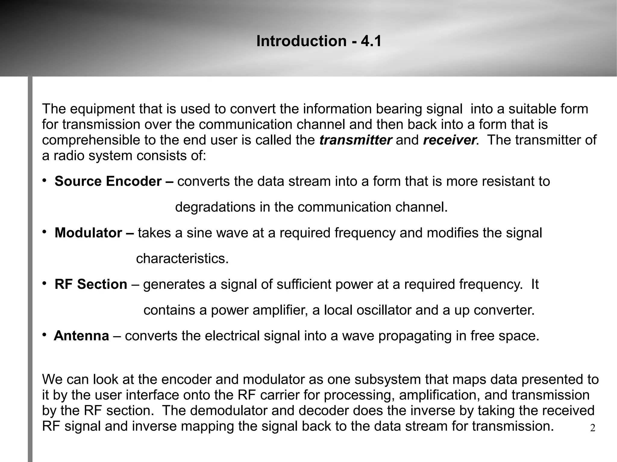 The document provides an overview of digital communication and transmission systems. It describes the key components of transmitters and receivers, including encoders, modulators, RF sections, and antennas. It also discusses baseband systems, sampling processes, quantization, pulse amplitude modulation (PAM), and non-uniform quantization techniques like μ-law and A-law compression used for voice communication. Aliasing is described as high frequencies taking on the identity of lower frequencies in sampled signals, and methods to eliminate it like anti-aliasing filters and increasing the sampling rate are presented.
