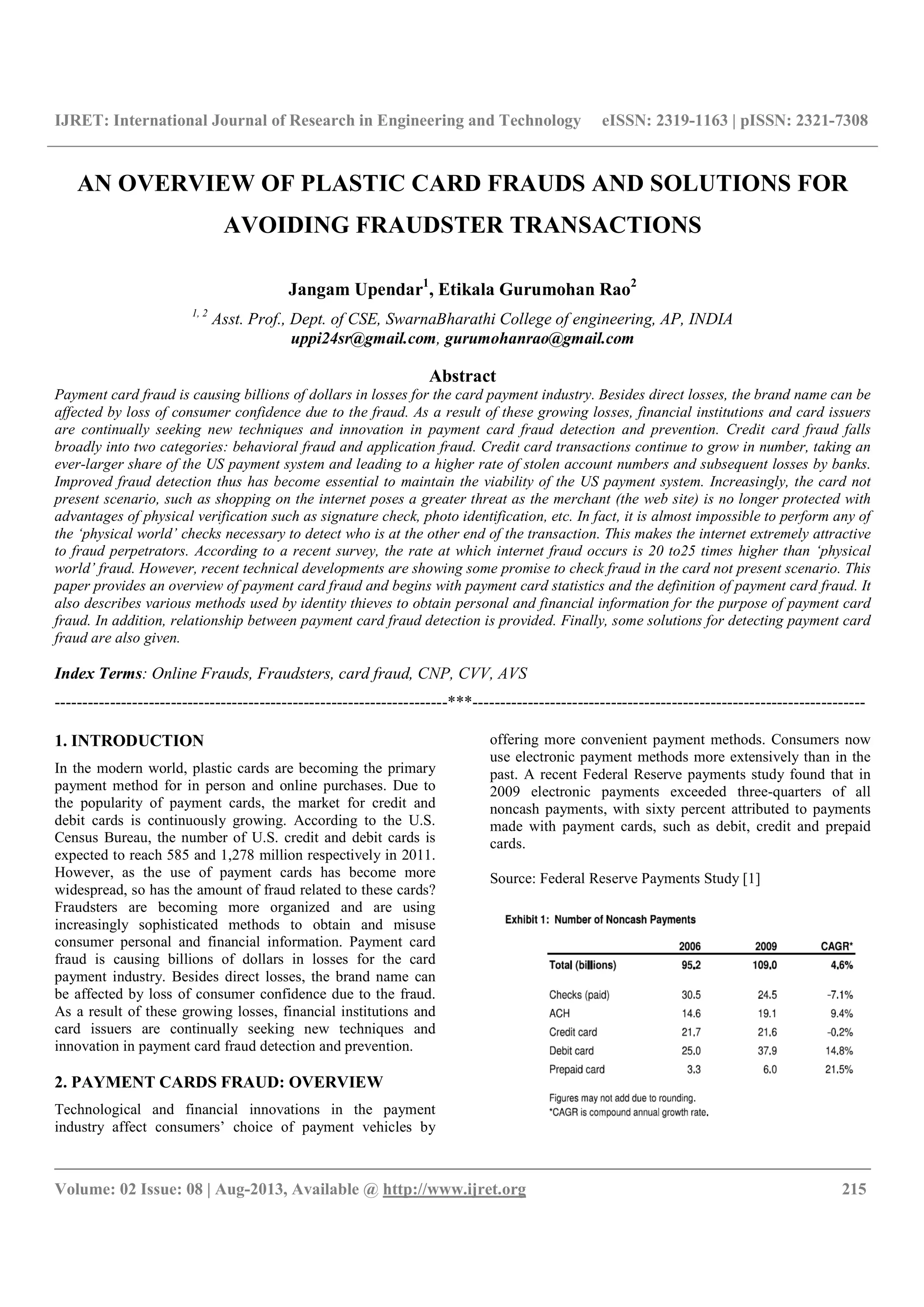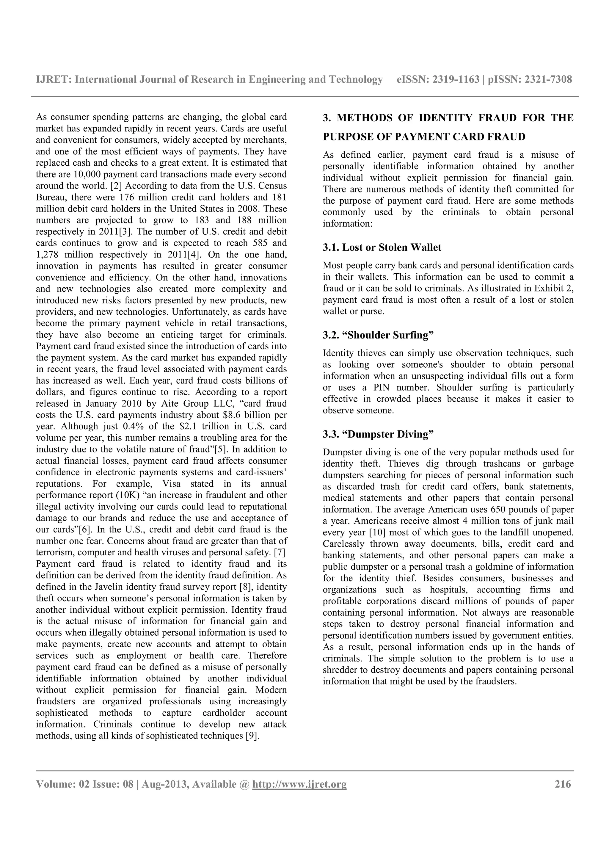 The document provides an overview of payment card fraud, highlighting its prevalence, causes, and the significant financial losses it incurs within the card payment industry. It categorizes fraud into behavioral and application fraud, emphasizing the rise of online fraud and its sophisticated methods, including identity theft techniques such as phishing, skimming, and mail theft. The paper also discusses the implications of fraud on consumer confidence and the reputational risks for financial institutions, alongside potential solutions for detection and prevention.