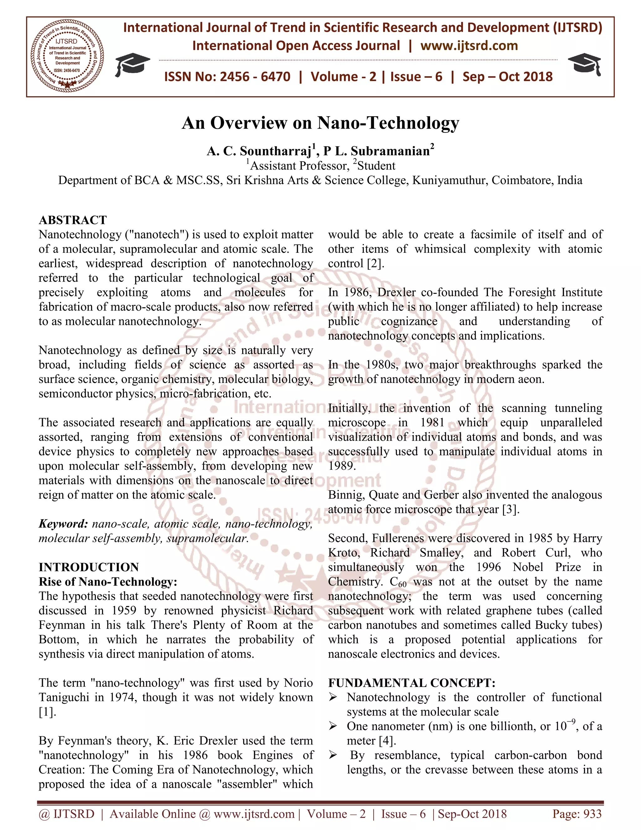 The document provides a comprehensive overview of nanotechnology, highlighting its definition, historical development, and various applications across multiple scientific fields. It describes key breakthroughs, such as the scanning tunneling microscope, and discusses both top-down and bottom-up approaches in nanomaterial creation. The future of nanotechnology promises advancements in materials, health, and energy efficiency but also raises concerns regarding potential risks associated with nanoparticles.