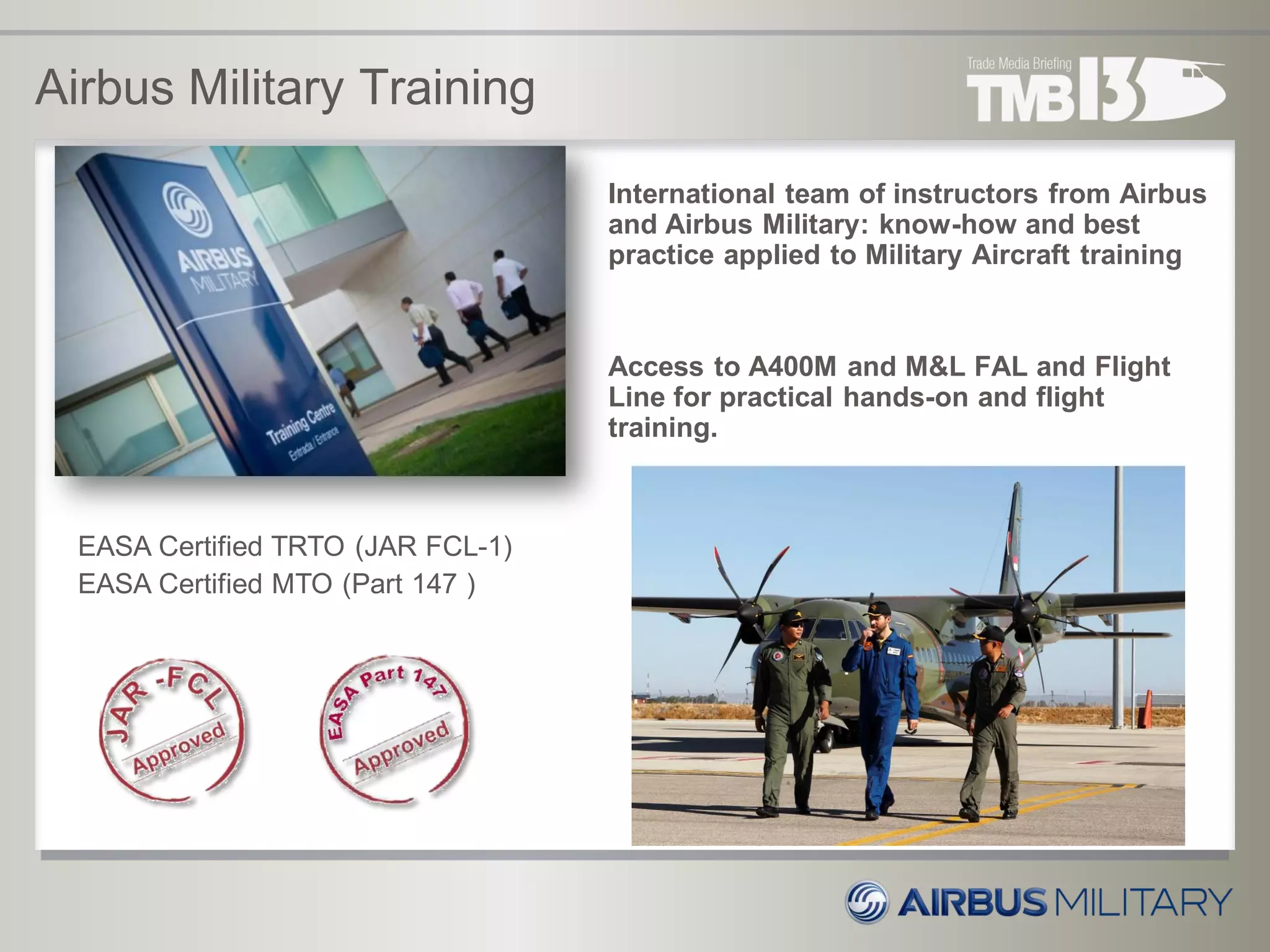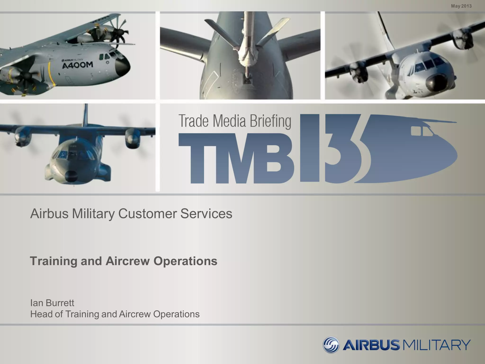 This document provides an overview of Airbus Military's training and aircrew operations for the A400M aircraft as of May 2013. It summarizes that Airbus has established an international network of training centers to provide pilot, loadmaster, and maintenance training. Key training devices like the full flight simulator and loadmaster workstation trainer were ready for training. The training center in Seville acts as the international hub, with additional national training centers being established. Airbus aims to promote operational safety and best practices through this integrated training network.