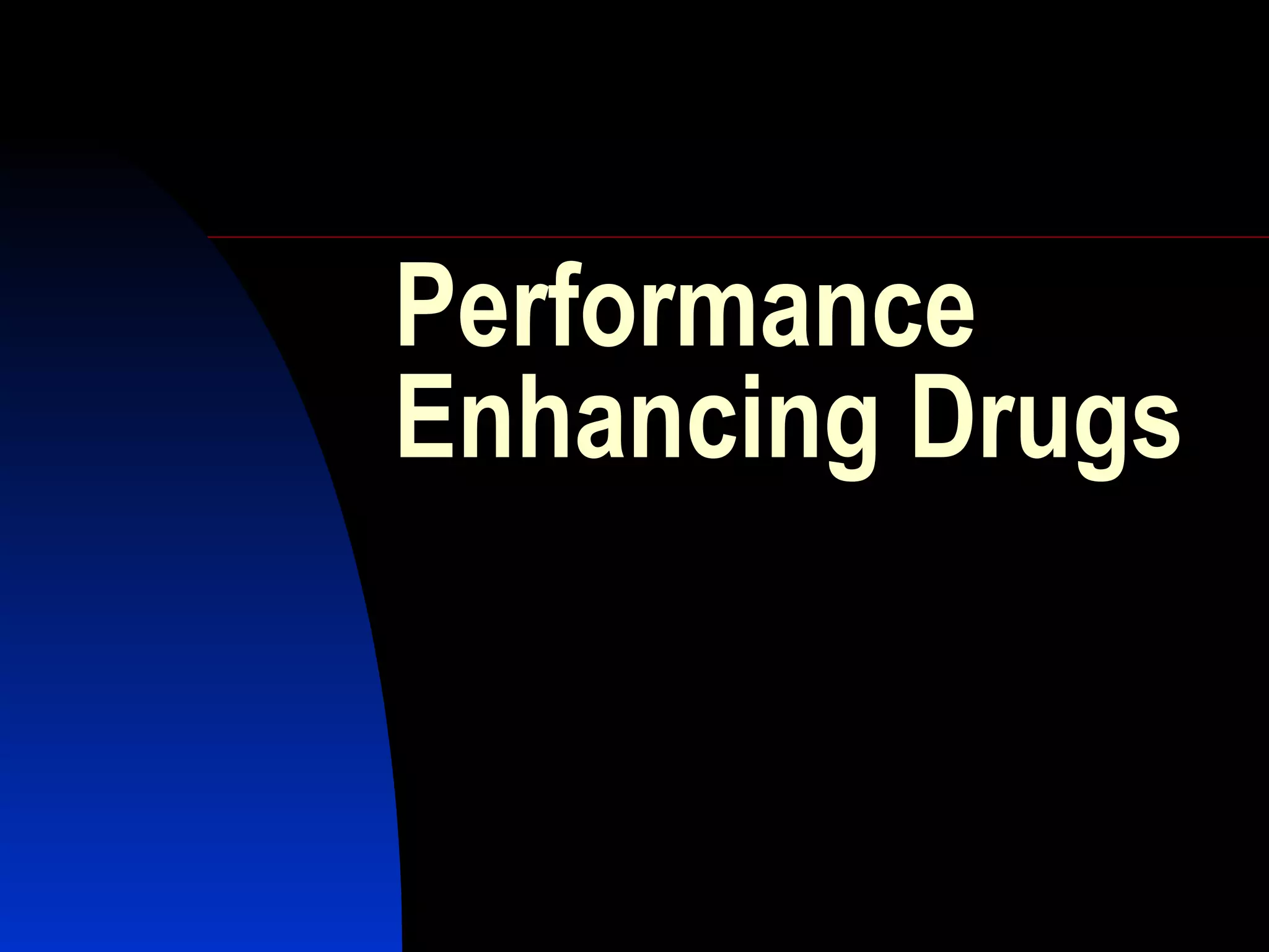 Performance enhancing drugs like steroids can have both beneficial and adverse effects. Glucocorticoids are produced by the adrenal glands and have anti-inflammatory and stress response functions but long term use can cause rebound deterioration and complications. Androgens and anabolic steroids are synthetic forms of testosterone that are used by bodybuilders to increase muscle and bone growth but can cause long term side effects like acne, increased aggression, liver damage, and cardiovascular and reproductive issues.