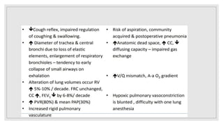 1. Organ systems like the cardiovascular, respiratory and renal systems undergo age-related changes that reduce functional reserve and increase vulnerability to haemodynamic fluctuations.