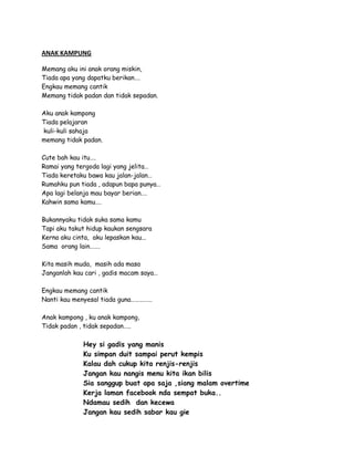 Puisi pertama menceritakan tentang seorang pemuda desa miskin yang jatuh cinta pada seorang gadis cantik tetapi merasa tidak layak untuknya karena status sosial dan pendidikan yang lebih rendah. Dia memutuskan untuk melepaskan gadis itu agar tidak menderita hidup bersamanya.