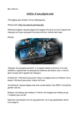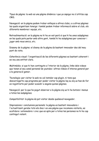 Tipologia: és una pagina personal i a la vegada també un noticiari d'un club.