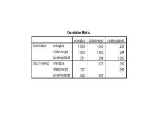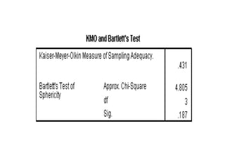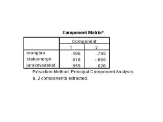 Analisis faktor bertujuan untuk mereduksi dimensi data dengan menyatakan variabel asli sebagai kombinasi linear sejumlah faktor yang mampu menjelaskan keragaman data. Teknik interdependensi digunakan untuk mengidentifikasi variabel yang saling berkorelasi. Analisis faktor menekankan adanya kontribusi varian setiap variabel terhadap variabel lainnya.