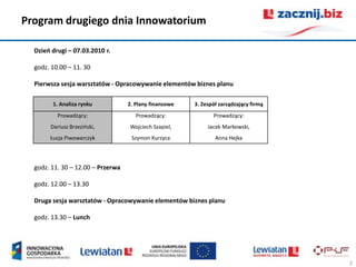 Druga sesja warsztatów - Opracowywanie elementów biznes planu