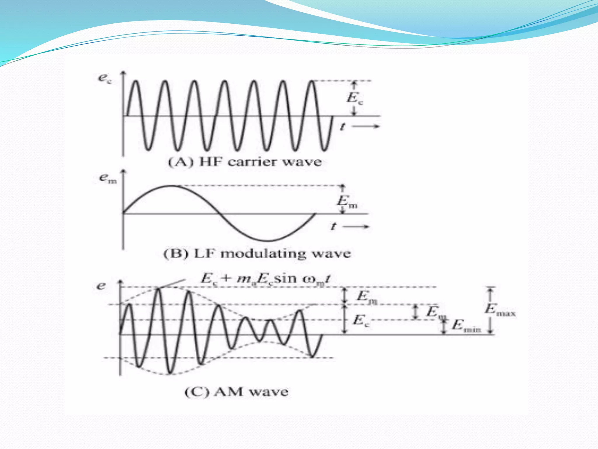 2) Amplitude modulation varies the amplitude of a carrier wave using a modulating signal. This generates sidebands at frequencies above and below the carrier frequency.