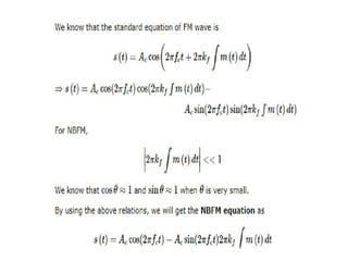The document outlines a course on analog communication systems, focusing on amplitude and angle modulation, demodulation techniques, radio receivers, and noise analysis. It specifies objectives and outcomes for students, including the ability to analyze various modulation schemes, compute communication system parameters, and understand the impact of noise. The content is divided into multiple units covering topics like amplitude modulation, double sideband suppression, frequency modulation, and methods of multiplexing within the context of information theory.