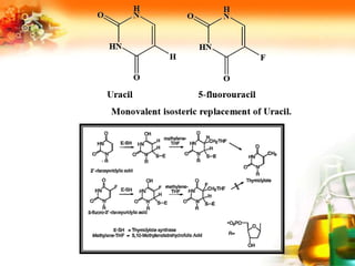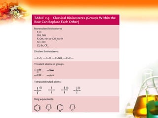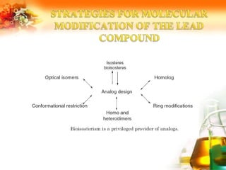 The document presents an overview of analog design and bioisosterism in drug development, highlighting the modification of drug molecules to enhance therapeutic properties while minimizing adverse effects. It categorizes bioisosteres into classical and non-classical types and provides examples of chemical substitutions that have led to effective drug analogs. The synthesis of bioisosteres is emphasized as a crucial strategy in improving pharmacological outcomes through subtle changes in physicochemical properties.