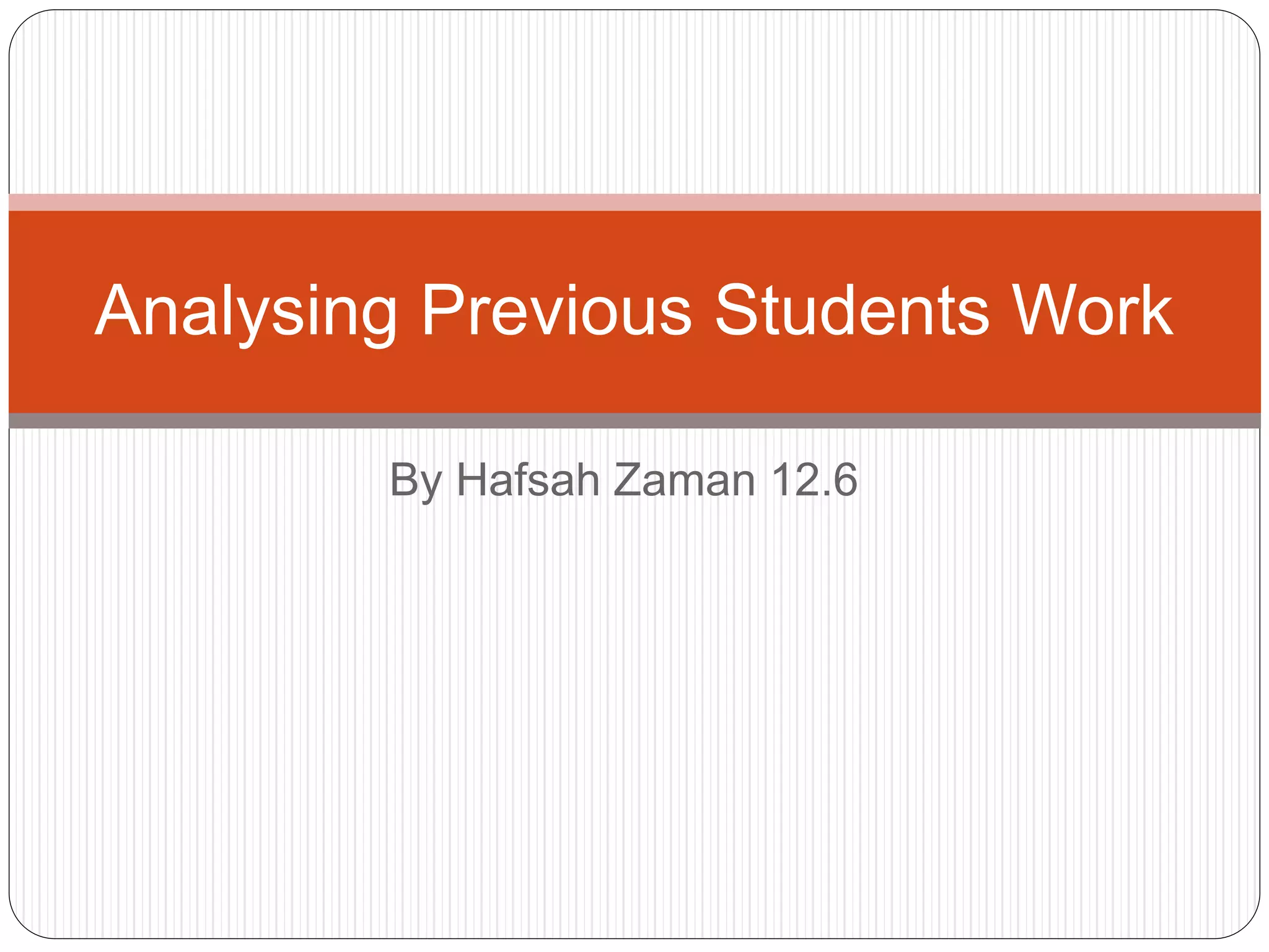 This document analyzes and summarizes the strengths and weaknesses of previous students' films. For the film "The Edge", strengths included establishing tension through juxtaposition in the opening scene, using camera positioning to show who was being chased, incorporating non-diegetic music that built tension and changed to suit scenes, and using long shots and dim lighting to create an atmosphere of tension. Weaknesses were that the dark lighting sometimes made it hard to see, acting was weak at times due to a lack of dialogue, and the title font was confusing. For the film "Angel Dust", the analysis did not provide any details about its strengths or weaknesses.