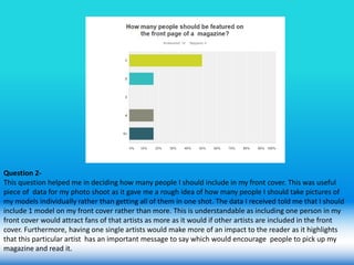 This document summarizes the results of a survey about design choices for a music magazine. Key findings include: