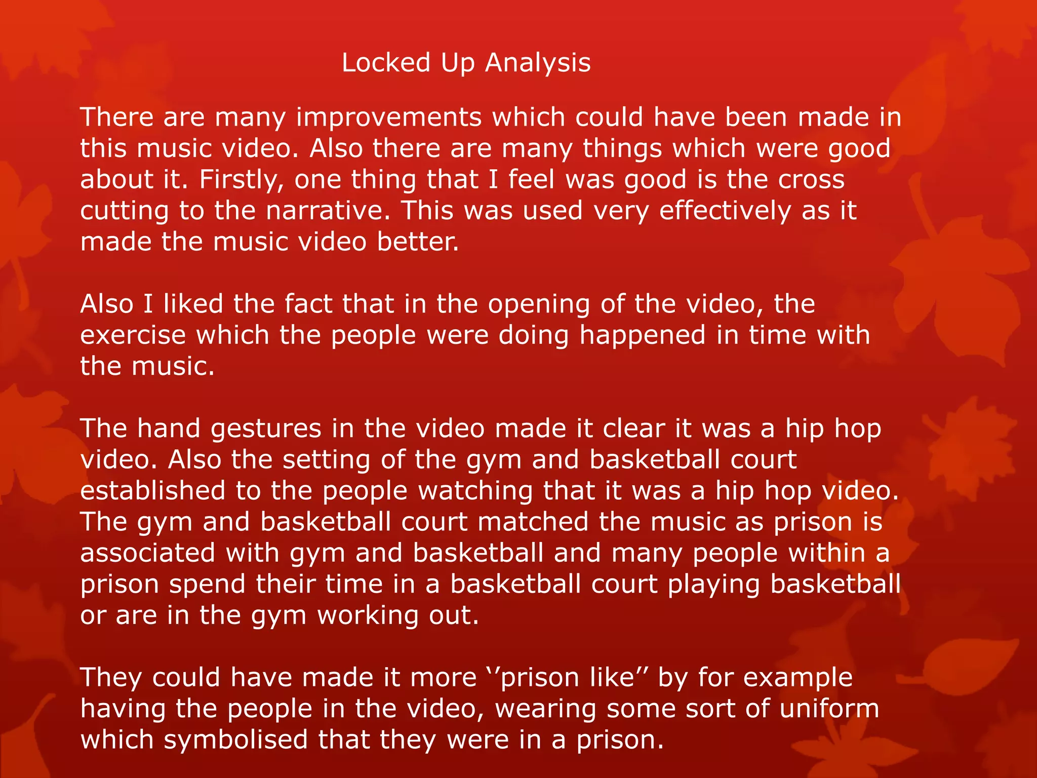 The document provides an analysis and critique of multiple music videos. It notes both positive and negative aspects. Positives included effective use of cross-cutting, matching movements to the music, and settings that established the hip-hop genre. Negatives were a lack of more "prison-like" elements, repetitive footage, improper aspect ratios, poor lighting, and faulty lip-syncing. The analysis suggests areas for improvement in making the videos more engaging and better aligned with the songs.