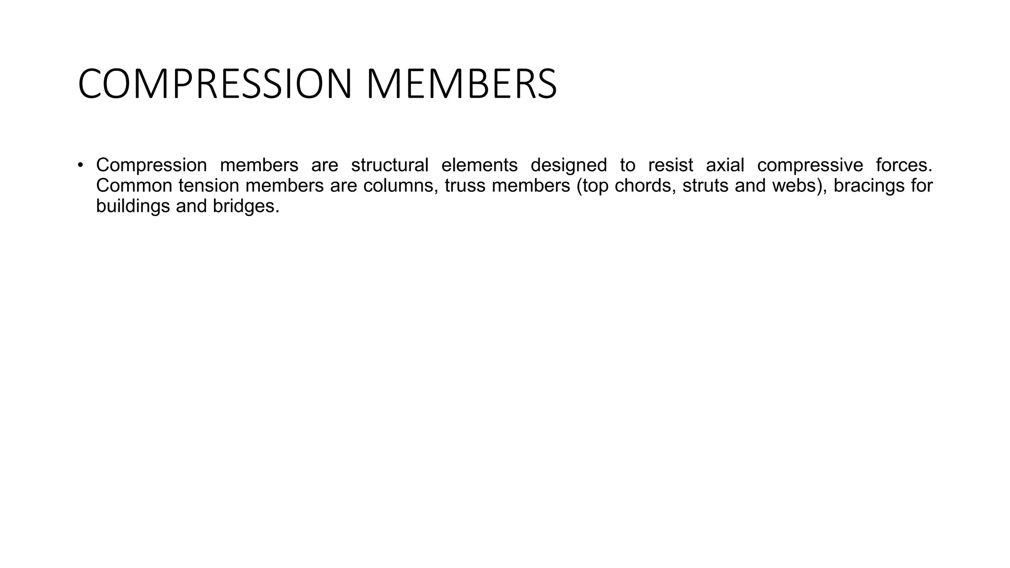 • Compressionmembers are structural elements designed to resist axial compressive forces.