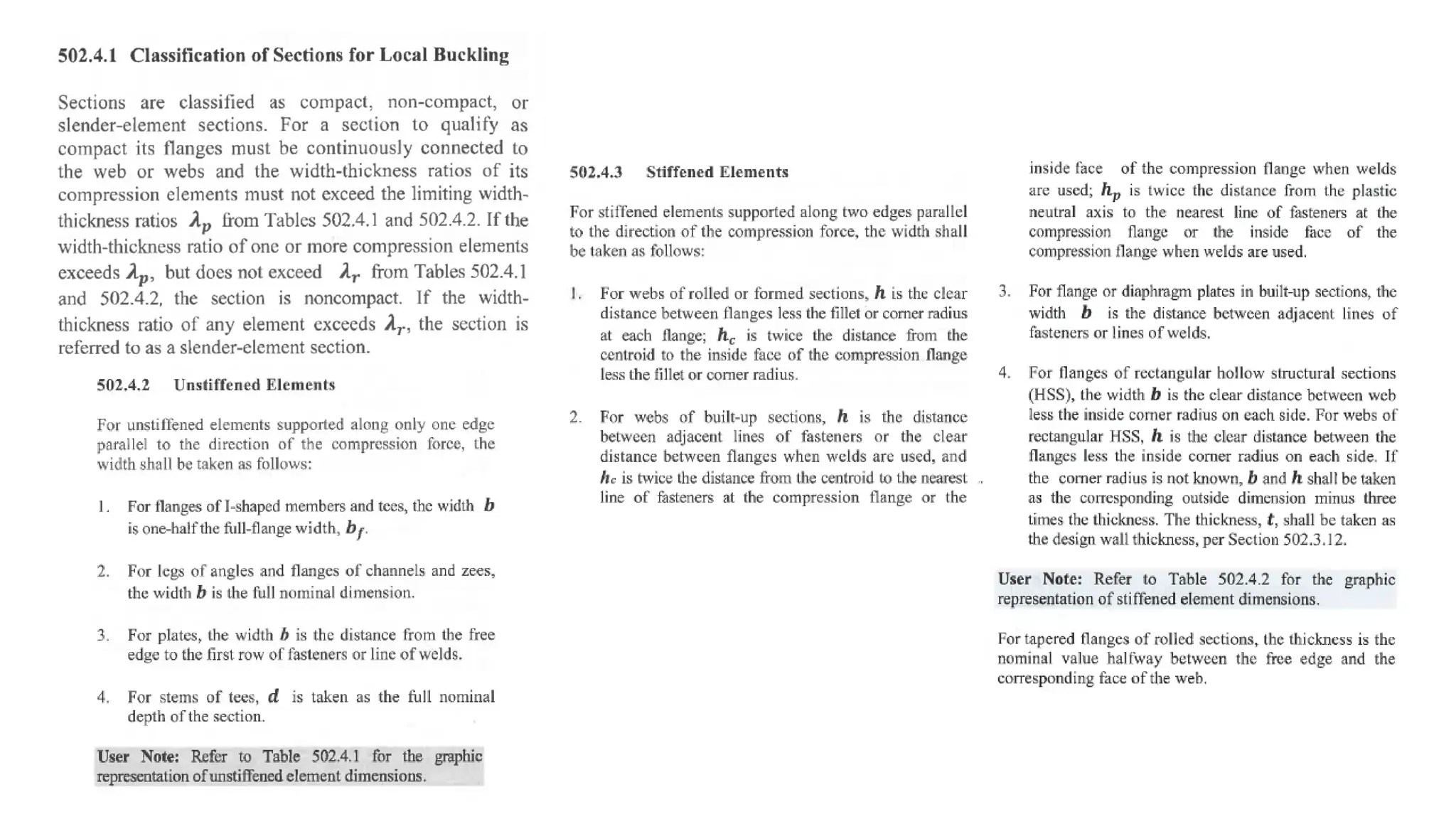 flanges - are slender and can buckle locally (i.e., web local buckling and flange local buckling) in contrast to