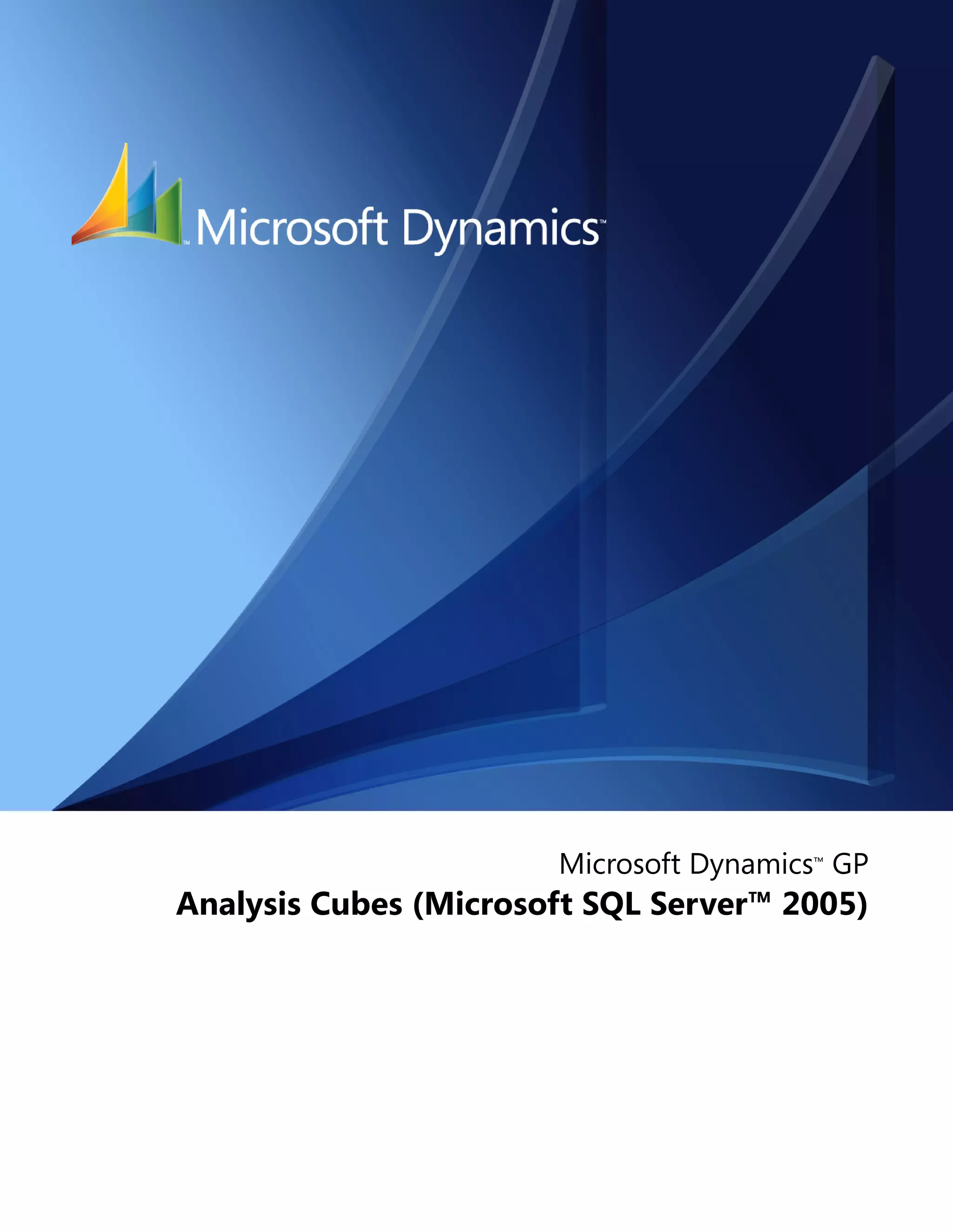 The document discusses the system requirements for installing and configuring Analysis Cubes for Microsoft Dynamics GP. It describes configurations where the Microsoft Dynamics GP and Analysis Cubes components are installed on the same server or on separate servers. It also covers requirements for client workstations and scenarios with multiple Analysis Cubes servers.