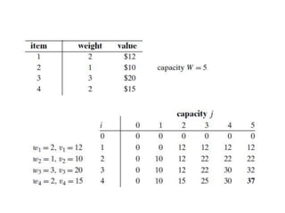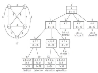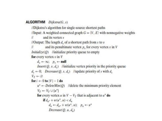 This document discusses algorithms and their analysis. It begins by defining an algorithm as a sequence of unambiguous instructions to solve a problem in a finite amount of time. Euclid's algorithm for computing the greatest common divisor is provided as an example. The document then covers fundamentals of algorithmic problem solving, including understanding the problem, choosing exact or approximate solutions, and algorithm design techniques. It also discusses analyzing algorithms based on time and space complexity, as well as worst-case, best-case, and average-case efficiencies. Common problem types like sorting, searching, and graph problems are briefly outlined.