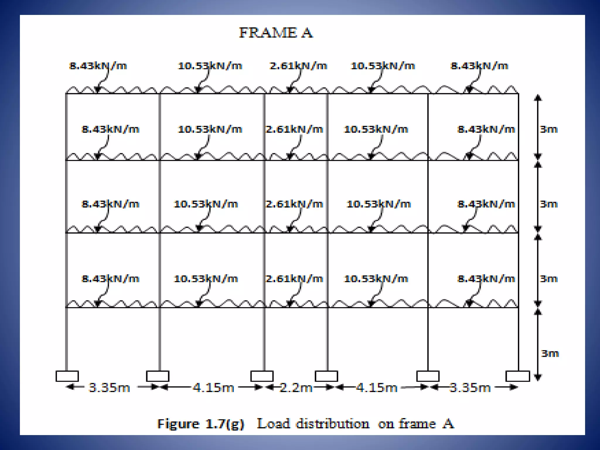 Total load acting on beam = 3 + 2 + 1 = 6 kN/m2
