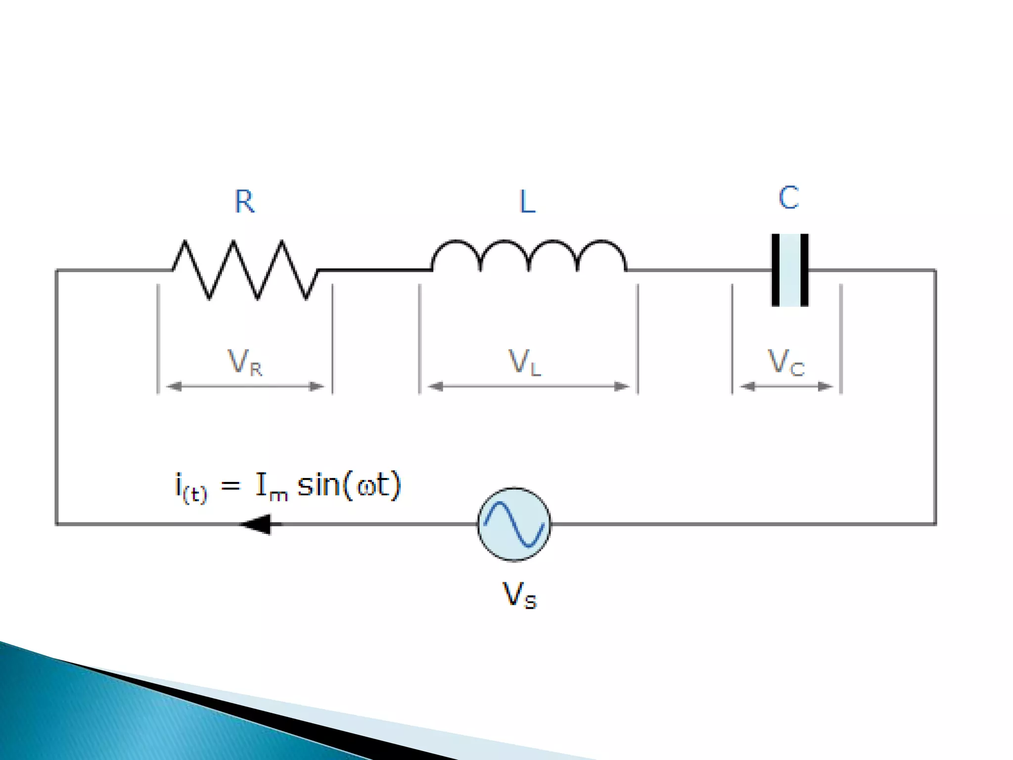Description of an R-L-C series circuit consisting of a resistor, inductor, and capacitor.