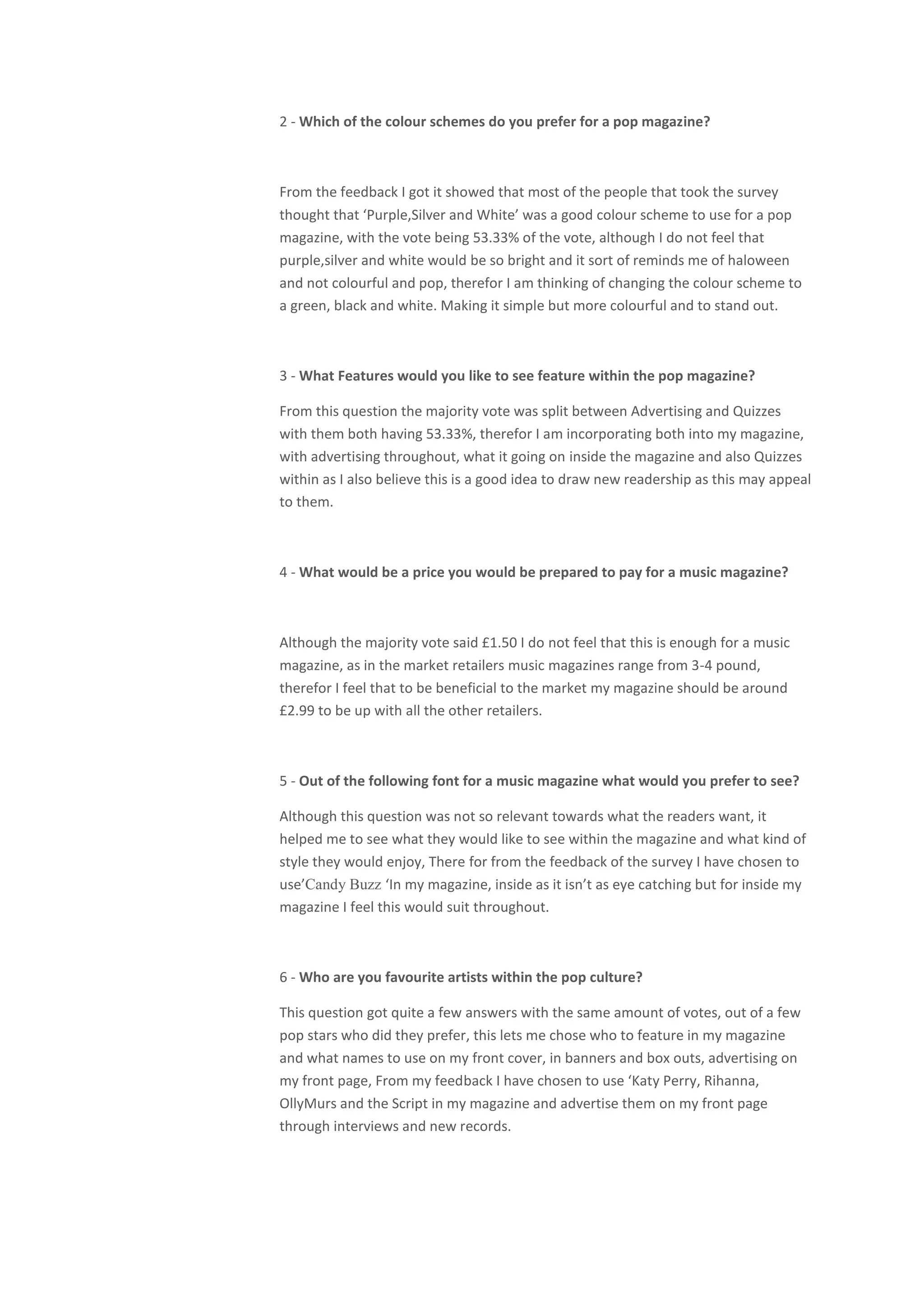 - Based on the feedback, the magazine will be titled "Flavor" and priced at £2.99, targeting young teenagers as readers.