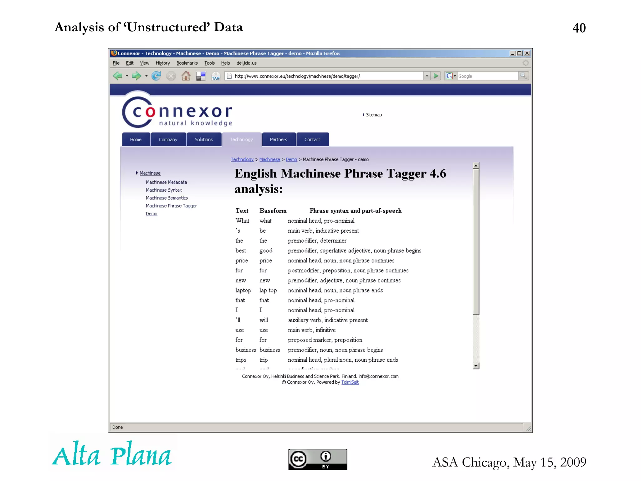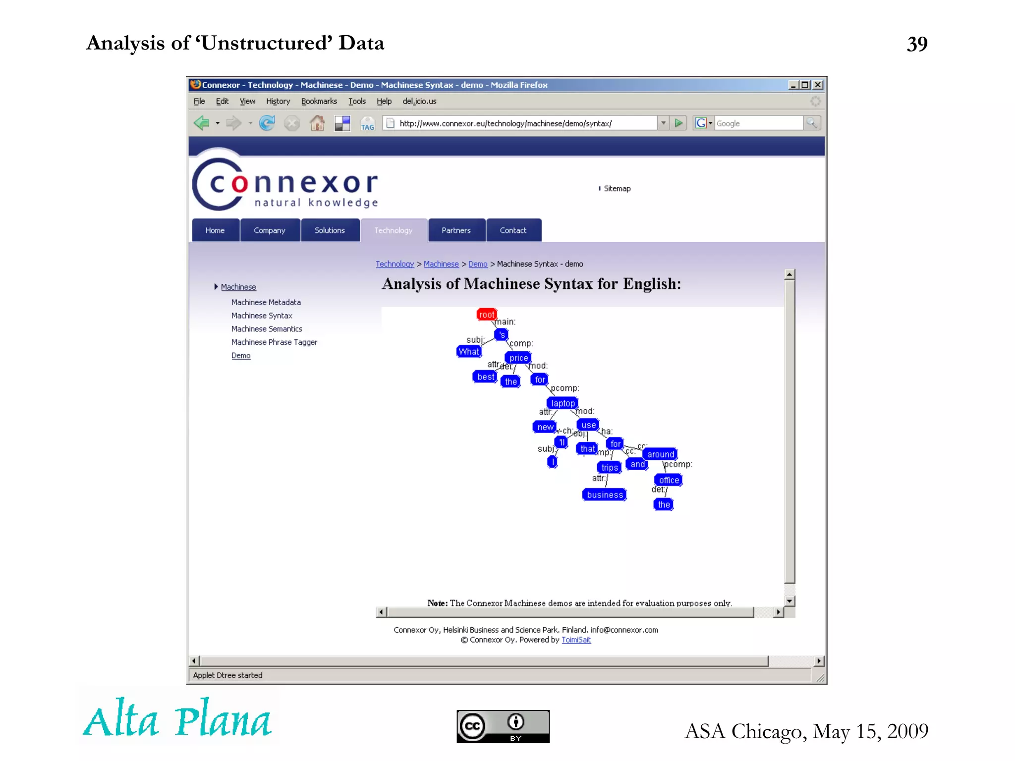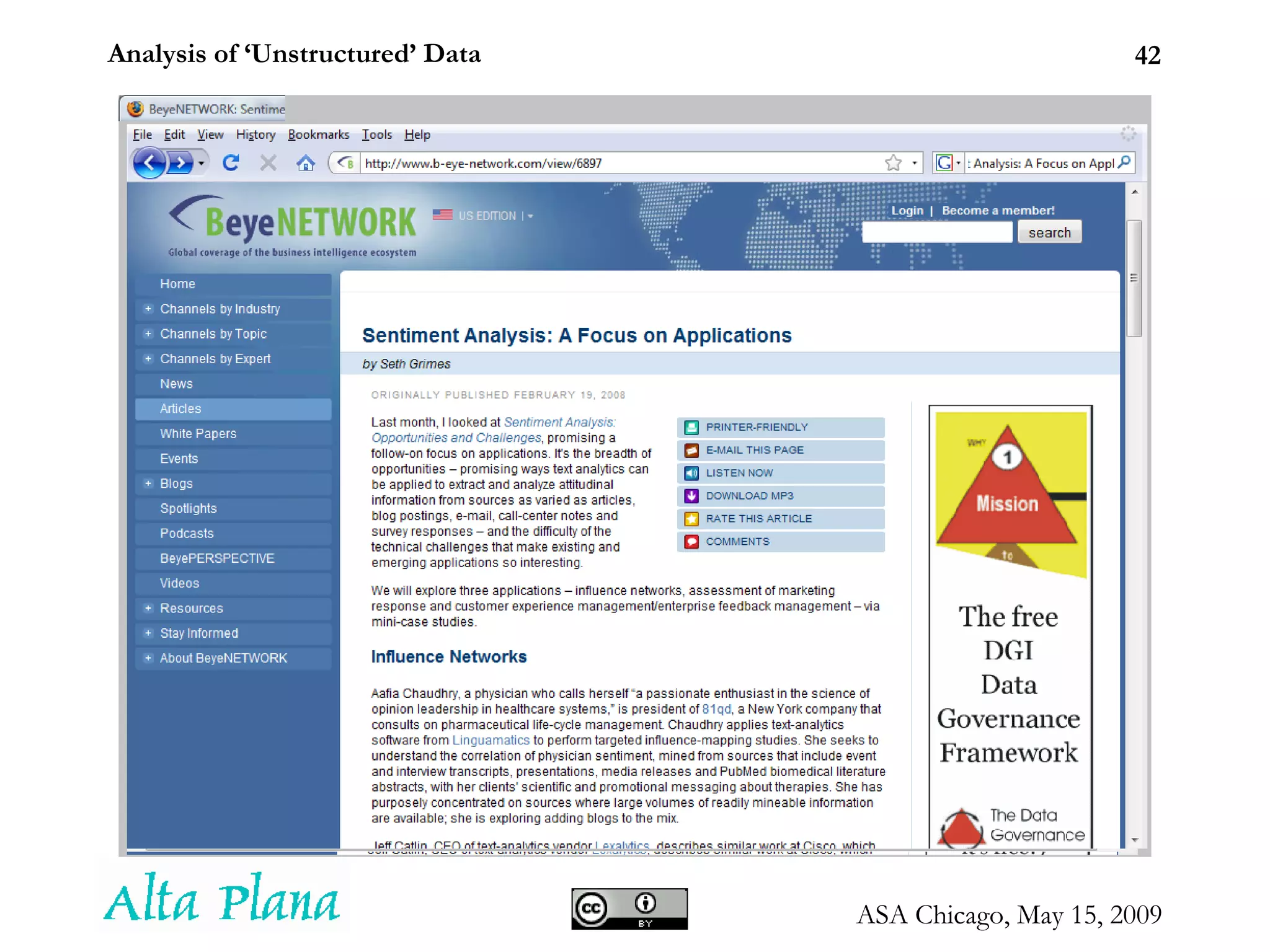 Analysis of ‘Unstructured’Data Seth Grimes Alta Plana Corporation 301-270-0795 -- http://altaplana.com ASA Chicago Chapter Proliferation of Digital Information and Recent Uses in Statistical Applications May 15, 2009