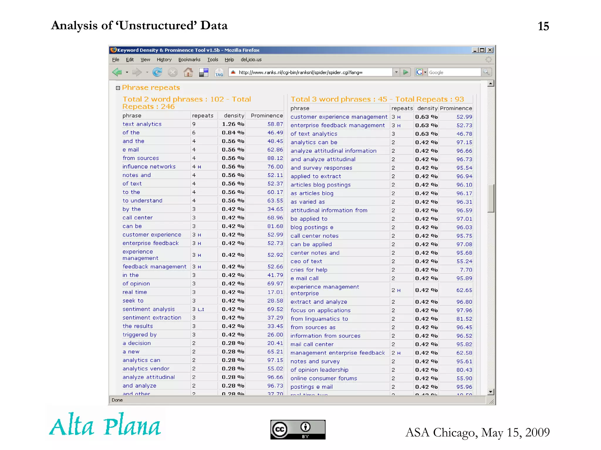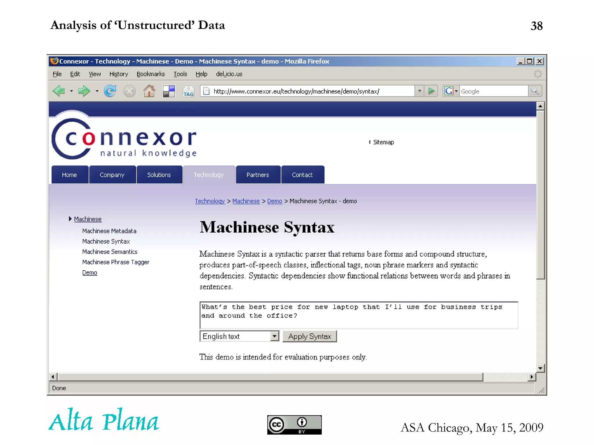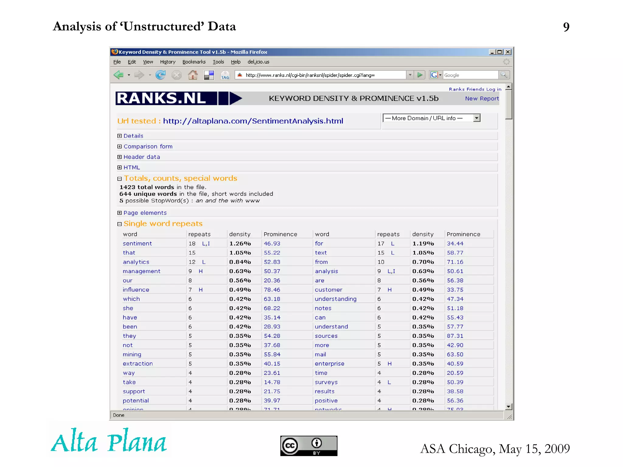 Analysis of ‘Unstructured’Data Seth Grimes Alta Plana Corporation 301-270-0795 -- http://altaplana.com ASA Chicago Chapter Proliferation of Digital Information and Recent Uses in Statistical Applications May 15, 2009