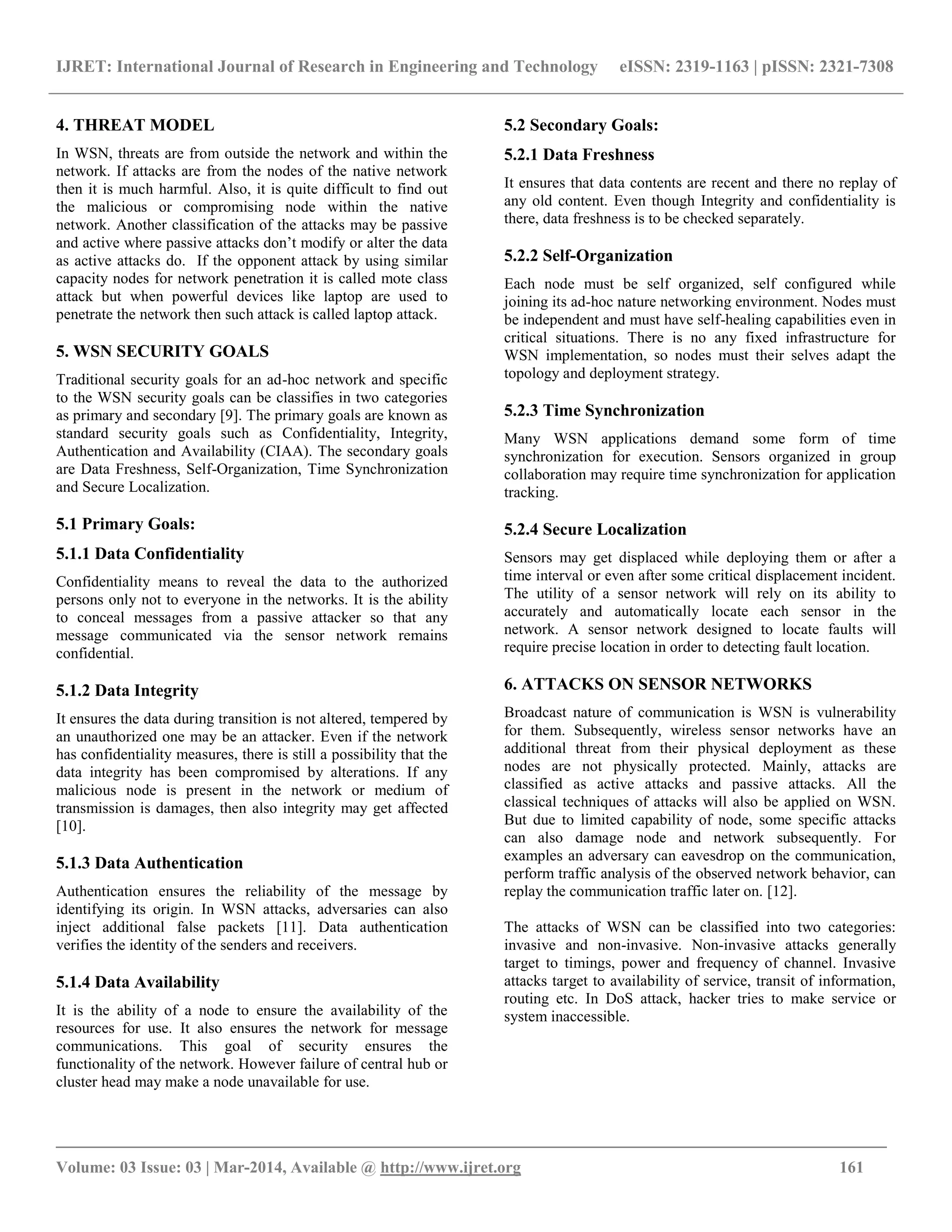 This document summarizes the analysis of wireless sensor networks, including security issues, attacks, and challenges. It discusses the characteristics of wireless sensor networks and their architecture. It outlines various security goals for wireless sensor networks, including confidentiality, integrity, authentication, and availability. It then describes different types of attacks against wireless sensor networks at the physical, link, network, and transport layers. These include jamming, tampering, exhaustion, collision, and flooding attacks. Finally, it discusses key challenges for wireless sensor networks, such as limited resources, heterogeneous platforms, dynamic network topologies, and handling mixed traffic from different applications.