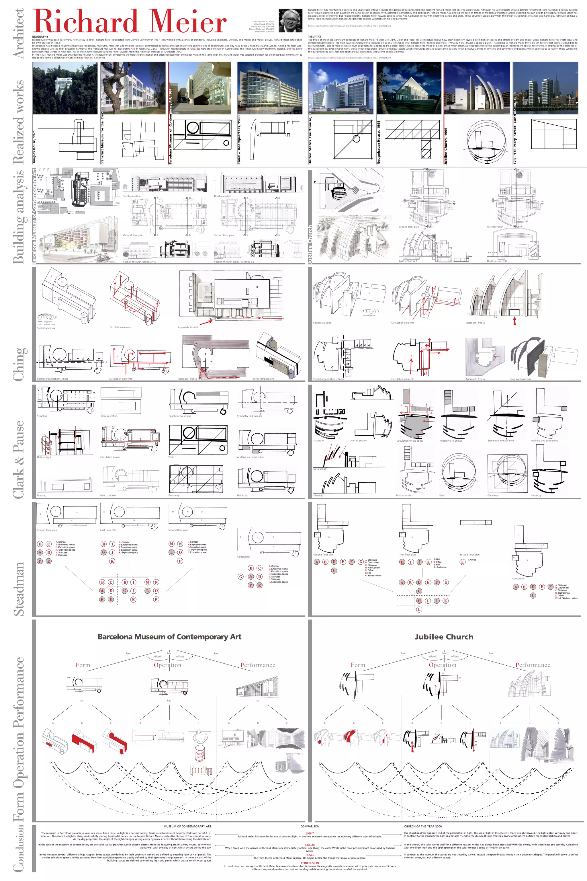 Richard Meier is an American architect born in 1934 known for his modernist and minimalist designs. Some of his most notable projects include the High Museum in Atlanta, museums in Frankfurt and Barcelona, and the Getty Center in Los Angeles. Meier established his own practice in 1963 and has maintained a consistent design philosophy focused on light, color, and a sense of place. His buildings are characterized by white geometric forms and extensive use of glass.