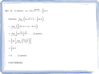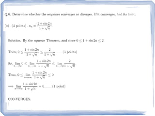 This document discusses sequences and their properties. It defines a sequence as a list of numbers written in a definite order. The nth term of a sequence is denoted as an. It provides examples of describing sequences using notation, defining formulas, and listing terms. It defines convergent and divergent sequences and gives examples testing for convergence or divergence. It also discusses bounded sequences and decreasing sequences, giving examples and proofs.