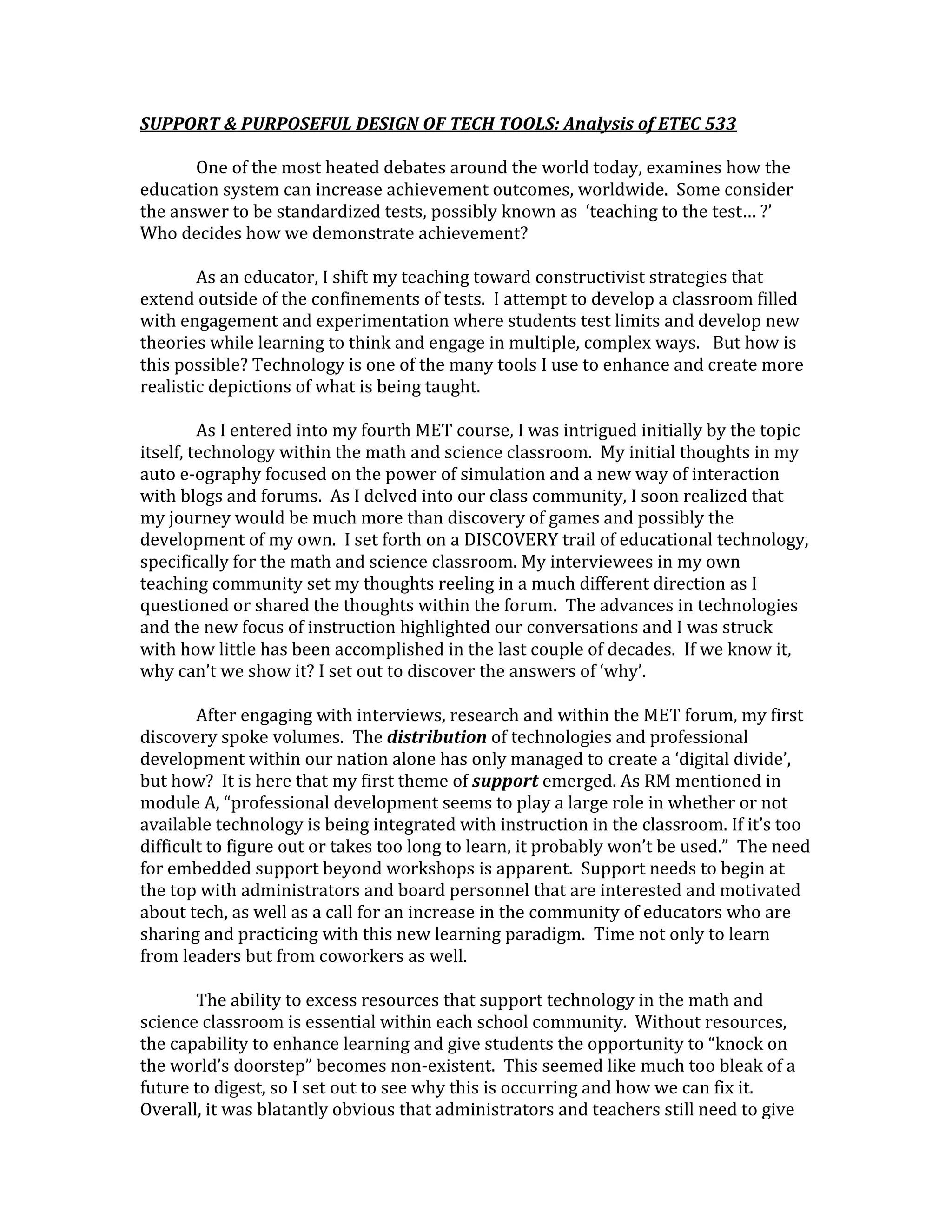 1. There is a need for strong support systems for teachers to learn how to effectively integrate technology into their lessons, as lack of support and professional development has led to a "digital divide".