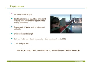 - The presentation outlines the contributions from recent acquisitions and growth in key business areas. Targets for continued growth through 2017 were also presented.