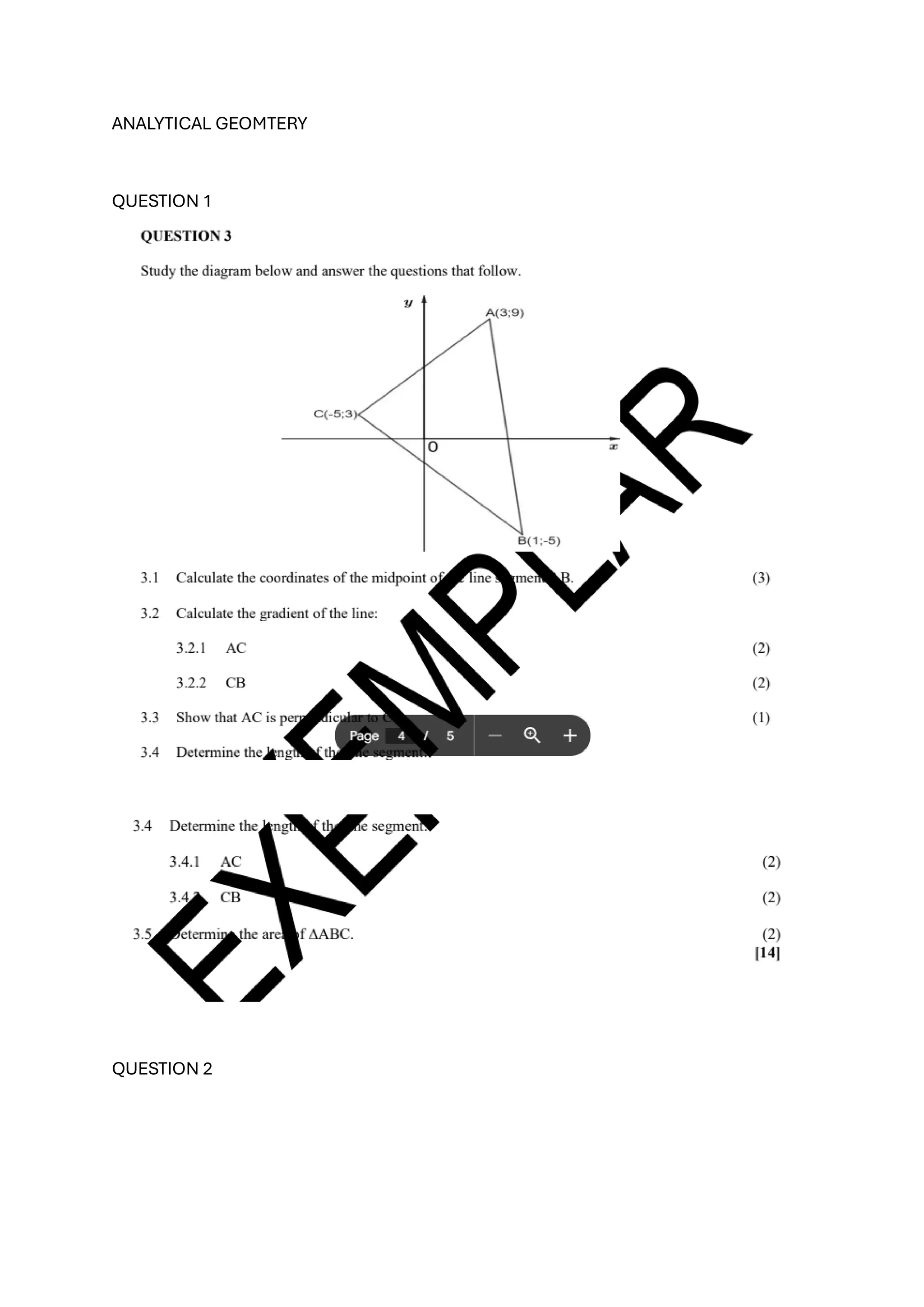The document contains a series of analytical geometry questions numbered from 1 to 9. Each question likely addresses different aspects of analytical geometry. The focus of the document is on problem-solving in this mathematical subject.