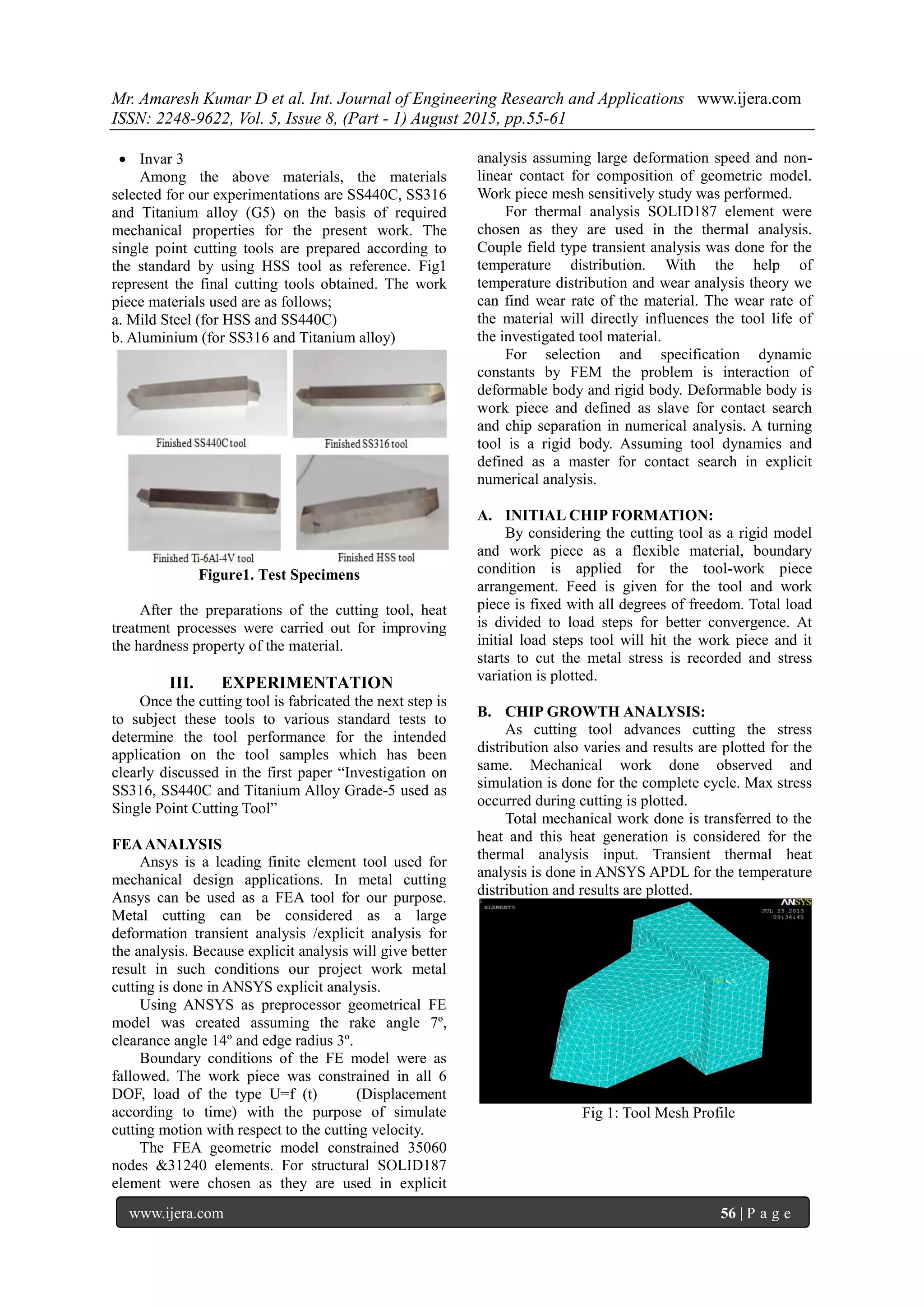 This paper presents an analytical investigation comparing the performance of SS316, SS440C, and titanium alloy materials as single-point cutting tools, focusing on parameters such as tool temperature, wear rates, and tool life. The study reveals that experimental values are closely aligned with analytical predictions, showing a correlation of about 15%. The authors conclude that SS440C is cost-effective for mild steel, while SS316 is preferable for aluminum, suggesting potential improvements in tool life through coatings and alternative heat treatments.
