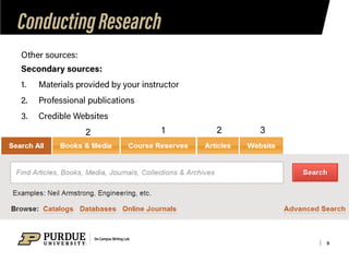 This document discusses different audiences for academic papers. The primary audience is gatekeepers like instructors and faculty who will evaluate the paper. The secondary audience includes peers and colleagues who may be interested in the topic. A shadow audience consists of others who may incidentally come across the paper online or elsewhere. The document stresses considering these various audiences when writing a paper to effectively communicate your message to multiple relevant groups.