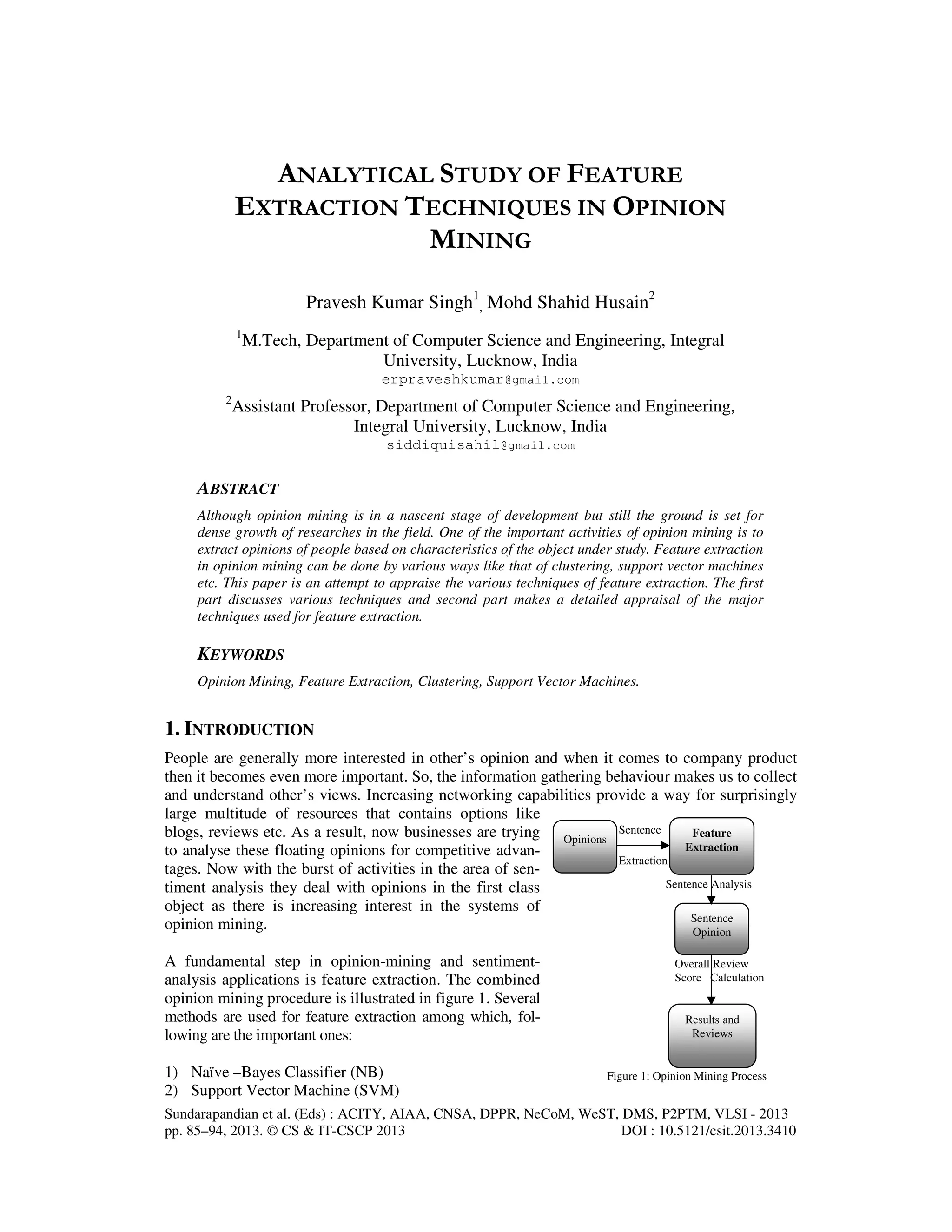 This document reviews various feature extraction techniques applied in opinion mining, emphasizing methods like Naïve Bayes, Support Vector Machines (SVM), and Multi-Layer Perceptron (MLP). It discusses the importance of feature extraction for analyzing public opinions from datasets such as product and movie reviews, and evaluates the performance of different classifiers. Additionally, the paper categorizes major techniques and addresses their advantages, disadvantages, and accuracy in sentiment analysis.