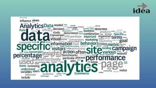 Analytics is the process of obtaining an optimal decision based on existing data. Many users of analytics tools like Google Analytics do not have time to fully utilize the tools due to large amounts of data and busy workloads. As a result, they can only perform basic monthly or weekly reporting and do not have the capacity to do deeper analysis that could provide more actionable insights. The document discusses how analytics can reveal information about users, intentions, and behaviors from data. It also outlines the key steps in an analytics process from defining metrics to measurement, analysis, reporting and optimization.