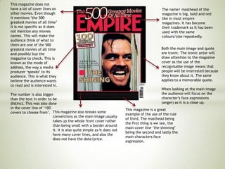 This magazine cover uses various design techniques to attract and intrigue readers. The main image is a close-up of the villain from the movie Scream, taking up most of the cover. The title "Scream Returns" stands out in a different color. There are also small sell lines but they are compacted at the bottom. The design prioritizes the villain's face to draw attention and leaves little blank space. Together, these visual elements promote the movie while breaking conventions of typical magazine cover design.