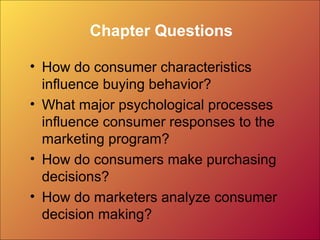 The document analyzes consumer behavior by examining how cultural, social, and personal factors influence purchasing decisions. It outlines the consumer buying process, which includes need recognition, information search, evaluation of alternatives, purchase decision, and post-purchase behavior, along with key psychological processes such as motivation and perception. Additionally, it discusses various marketing strategies and consumer segments to understand better how consumers engage with products and brands.