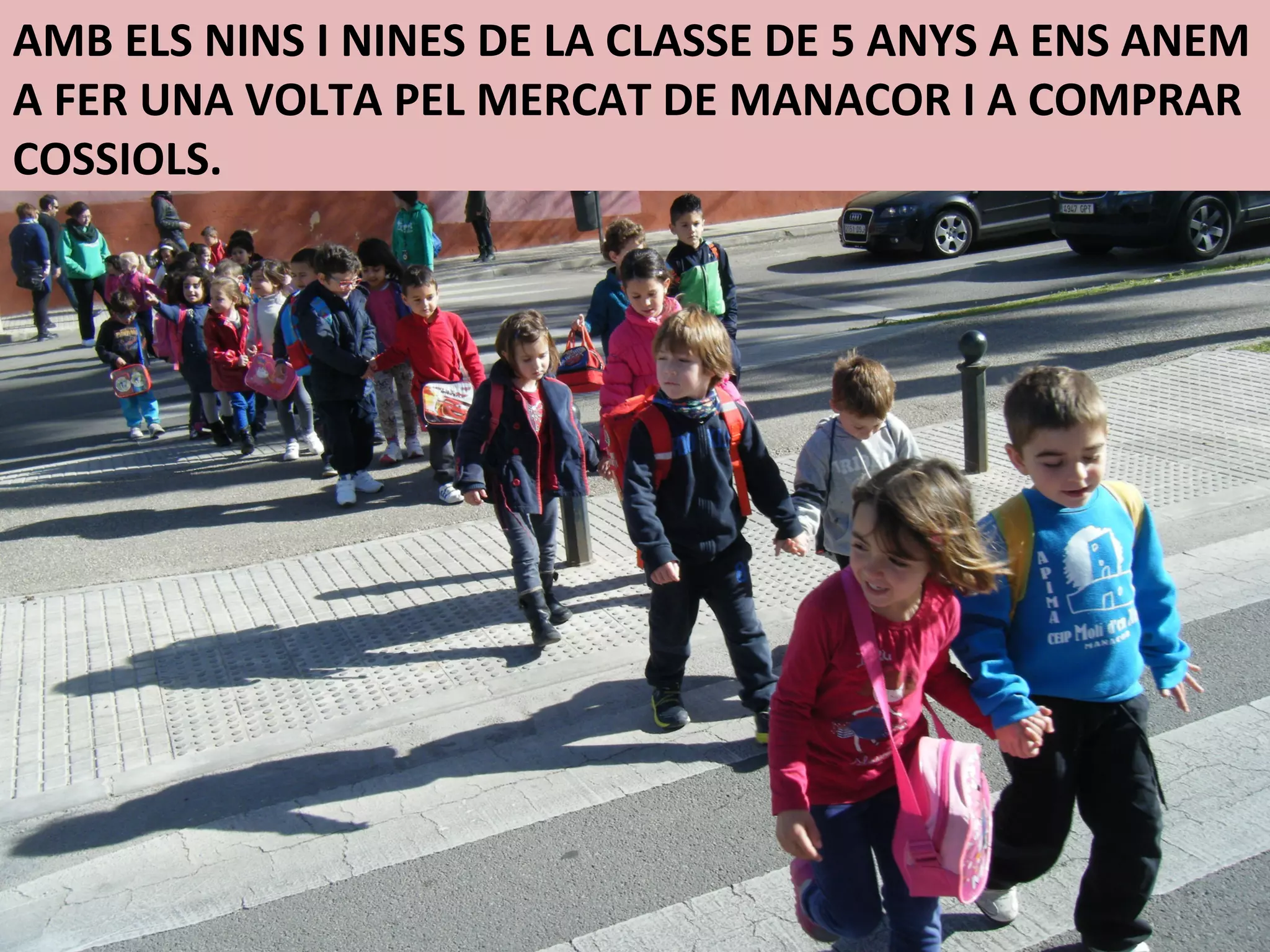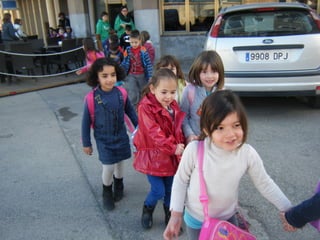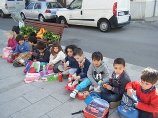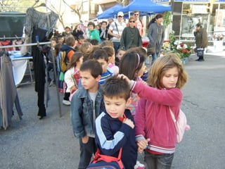 The class of 5-year-olds went on a walk through the Manacor market to buy plants. They saw many people and things for sale at the busy market, including animals, clothes, and bees. After their shopping trip, the children had a snack at a cafe near the market. They bought some plants which one of the parent's hung up, turning their school corridor into a colorful garden.