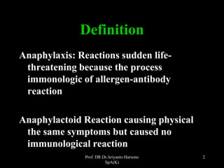 - Definitions of anaphylaxis and anaphylactoid reactions.