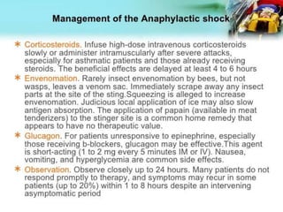 This document defines anaphylaxis and outlines its diagnostic criteria. Anaphylaxis is a serious allergic reaction that is rapid in onset and can cause death. There are three diagnostic criteria for anaphylaxis, which reflect different clinical presentations. Criterion 1 requires involvement of the skin, mucosal tissues, or both, and either respiratory compromise or reduced blood pressure. Criterion 2 requires two or more symptoms from skin, respiratory, or cardiovascular systems. Criterion 3 requires reduced blood pressure after exposure to a known allergen. The diagnostic criteria are intended to identify at least 80% of anaphylactic reactions based on their symptoms.