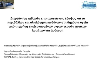 Διερεύνηση πιθανών επιπτώσεων στο έδαφος και το περιβάλλον και αξιολόγηση κινδύνων στη δημόσια υγεία από τη χρήση επεξεργασμένων υγρών εκ