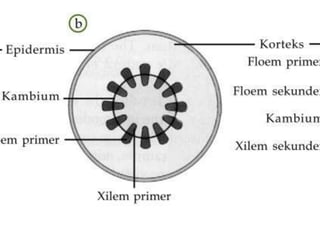 Batang merupakan organ tumbuhan yang berfungsi untuk menegakkan tubuh tumbuhan dan menghubungkan bagian akar dan daun. Terdapat perbedaan struktur antara batang monokotil dan dikotil, di mana batang monokotil tidak dapat tumbuh membesar karena tidak memiliki kambium sedangkan batang dikotil dapat tumbuh membesar karena memiliki kambium.