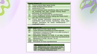 Dokumen ini menjelaskan tentang anatomi, fisiologi, dan patologi faring, termasuk struktur-struktur penting, fungsi, dan berbagai jenis infeksi serta terapinya. Terlebih, dibahas berbagai macam faringitis (viral, bakterial, fungal, dan spesifik), tonsillitis, serta karsinoma nasofaring. Pengelompokan penyebab, gejala, dan terapi untuk setiap kondisi juga disertakan.