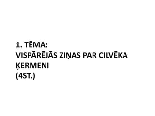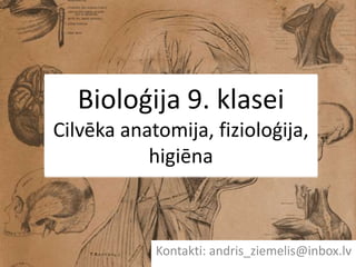 Ķermeņa uzbūveĶermenis jeborganisms;Sastāv no rumpja, galvas un diviem locekļu pāriem;Organisms ir vienota dzīva sistēma, kas nesaraujami saistīta ar apkārtējo vidi;Uzņem pārtiku (ķīmiskie elementi);Iedalīsim organismu:Mikroskopiskās daļās – šūnas;Makroskopiskās daļās – audi un orgāni, kā arī orgānu sistēmas