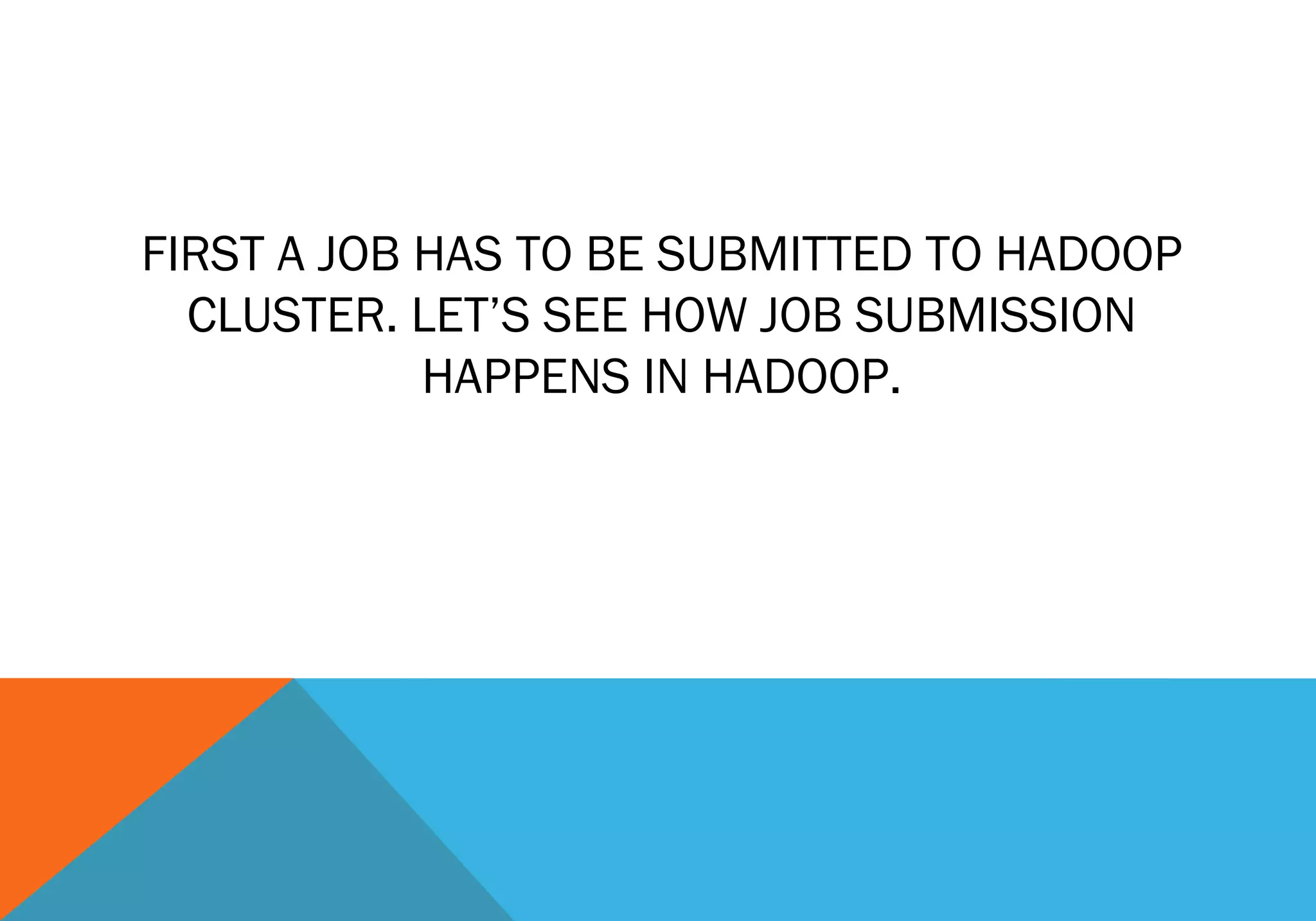 1) A job is first submitted to the Hadoop cluster by a client calling the Job.submit() method. This generates a unique job ID and copies the job files to HDFS.