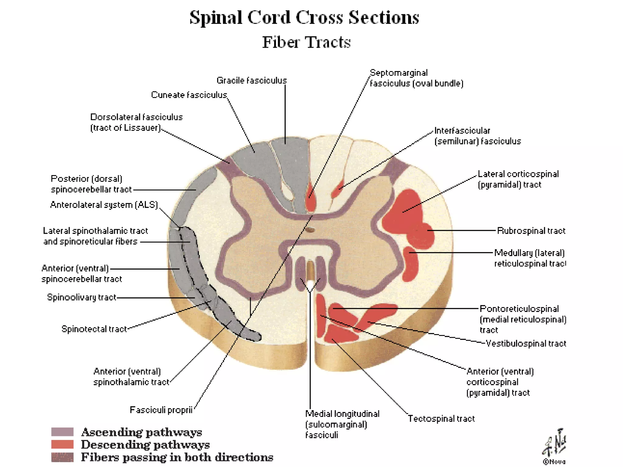 OBJECTIVES describe theexternal structure of the spinal cord, draw and describe the internal structure of the spinal cord, draw and describe the ascending and descending tracts within the spinal cord, describe the meninges surrounding the spinal cord, describe the blood supply of the spinal cord, explain the clinical correlations of & applications related to the spinal cord