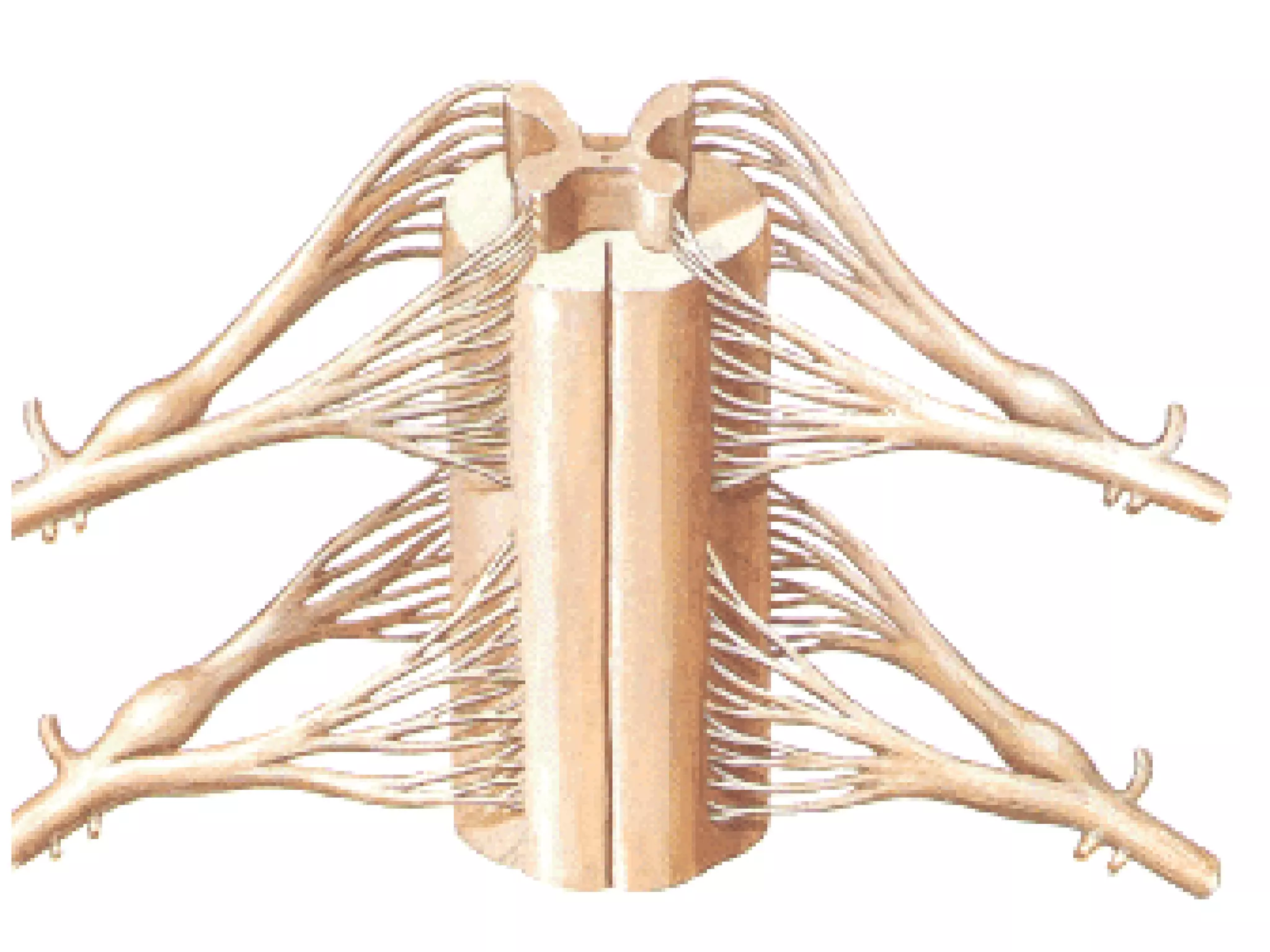 Nerve cells inthe anterior gray columns Large & multipolar Axons pass out in the anterior nerve roots as α -efferents Smaller nerve cells are multipolar Axons pass out in anterior roots as ɣ-efferents