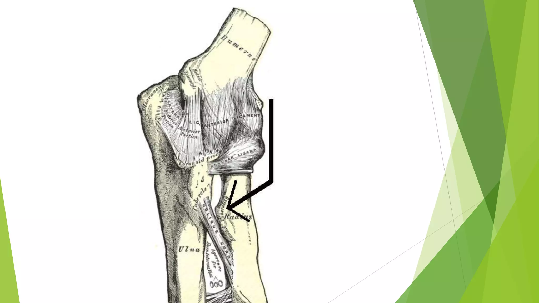The radius has an upper and lower extremity. The upper extremity includes a head, neck, and tuberosity. The head articulates with the humerus and ulna. The lower extremity has triangular articular surfaces for the carpus and ulna. It also has grooves on its dorsal surface for tendons. The shaft is narrower proximally than distally and has borders for muscle attachments.