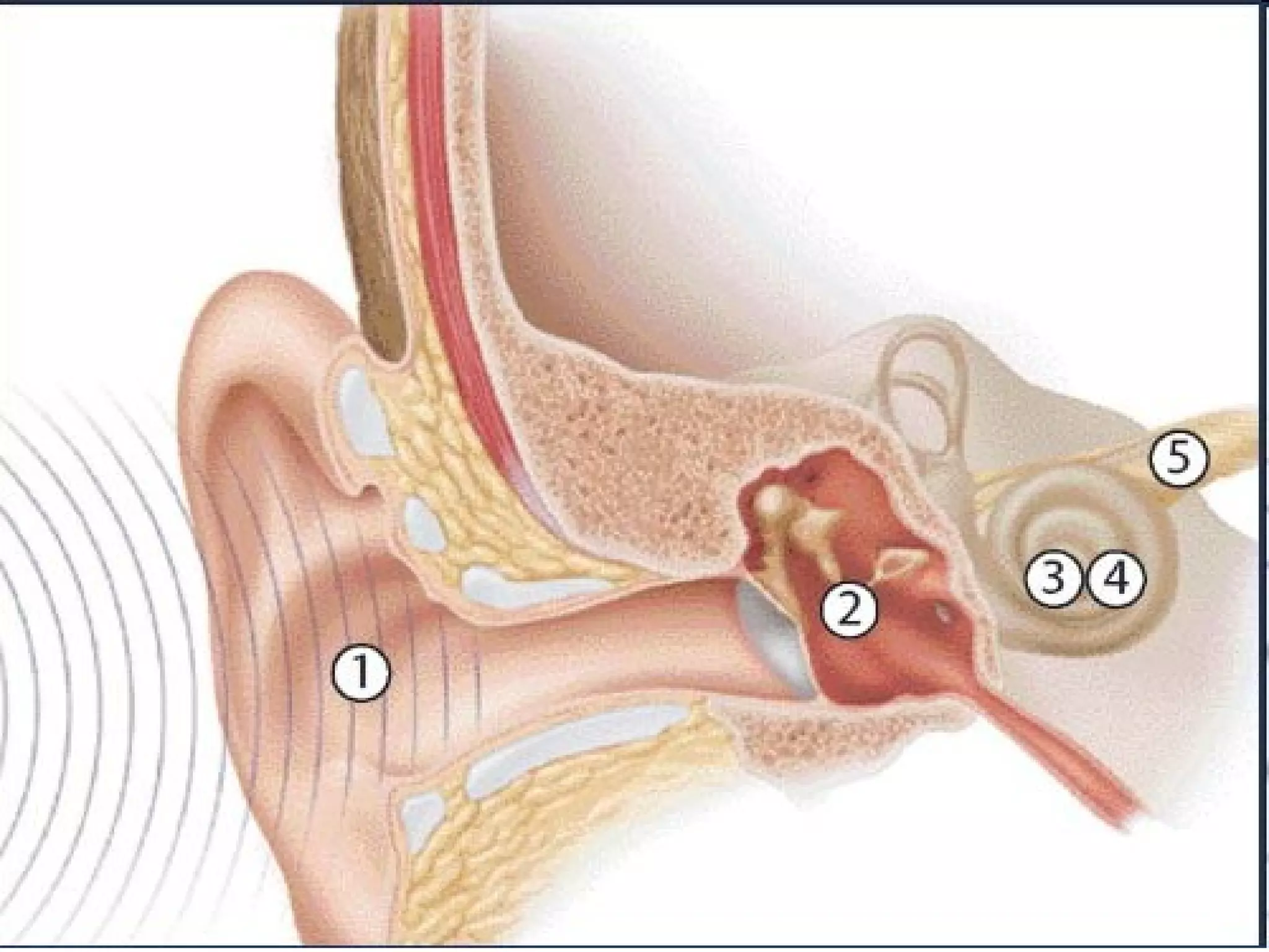 The ear is designed like a funnel to channel sound waves into the auditory canal and cause the ear drum to vibrate. Inside the ear, the vibrations are transmitted through three small bones to the cochlea, where fluid carries the signal to receptors. The cochlea contains receptors for both hearing and balance. Two types of equilibrium receptors in the cochlea, called the vestibular apparati, help the brain monitor the position of the head. Static equilibrium receptors identify basic positions like up and down, while dynamic equilibrium receptors detect more detailed movement and rotations through fluid in the semicircular canals. Damage to different parts of the ear can cause either conduction or sensorineural deafness.